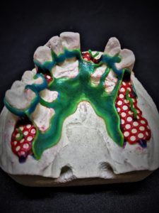 Krok po kroku przedstawione etapy wykonania struktury protezy szkieletowej z żywicy; od skanu po kanałowanie.